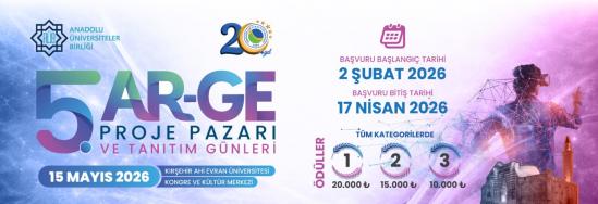 Anadolu Üniversiteler Birliği üyesi üniversiteler tarafından düzenlenen ve Kırşehir Ahi Evran Üniversitesi ev sahipliğinde gerçekleştirilecek olan 5. Ar-Ge Proje Pazarı ve Tanıtım Günleri, 15 Mayıs 2026 tarihinde akademi, öğrenci, sanayi ve kamu paydaşlarını bir araya getirecektir.